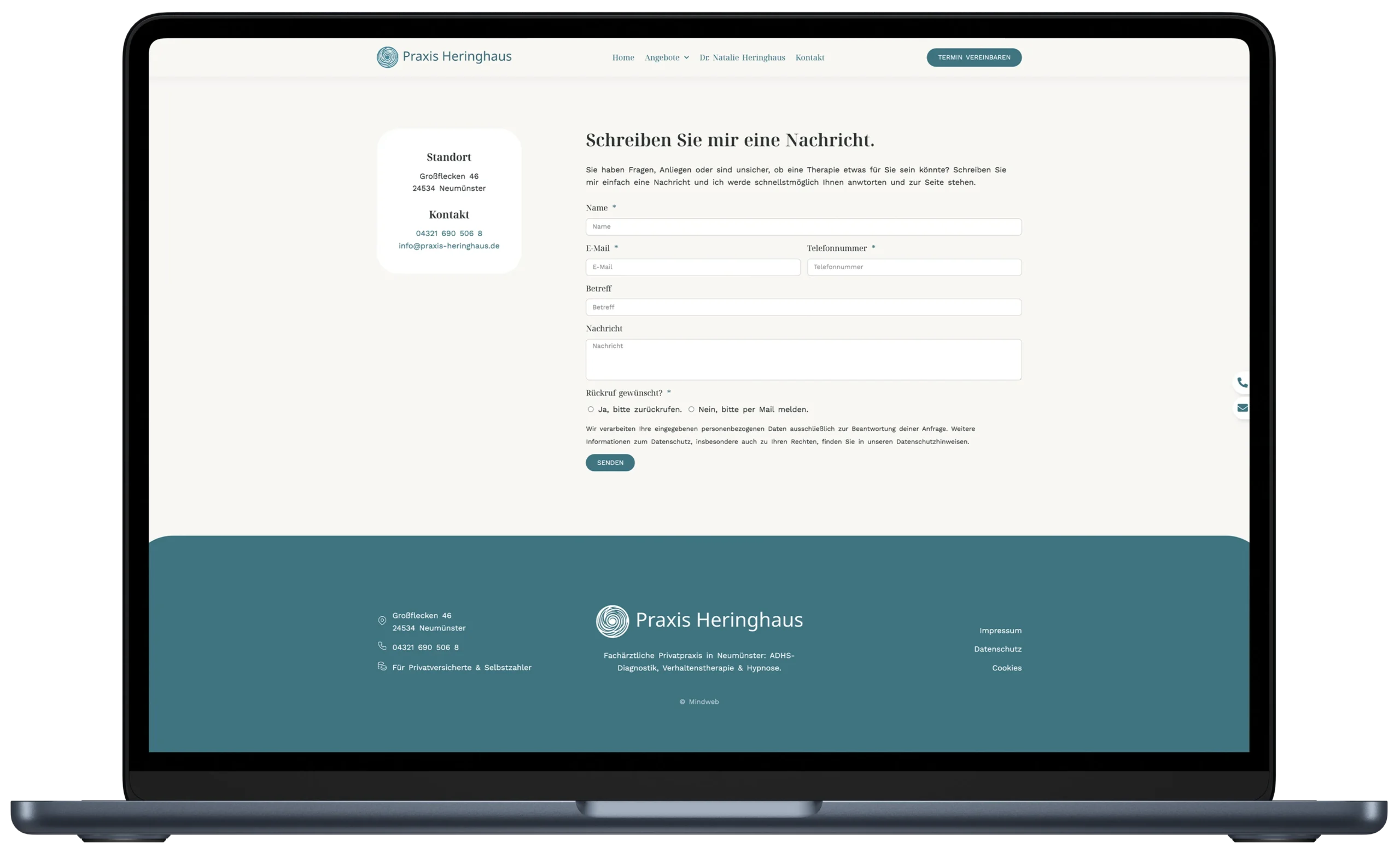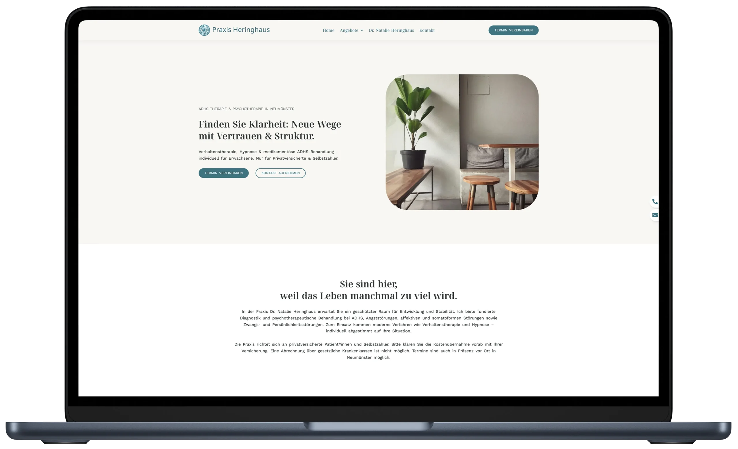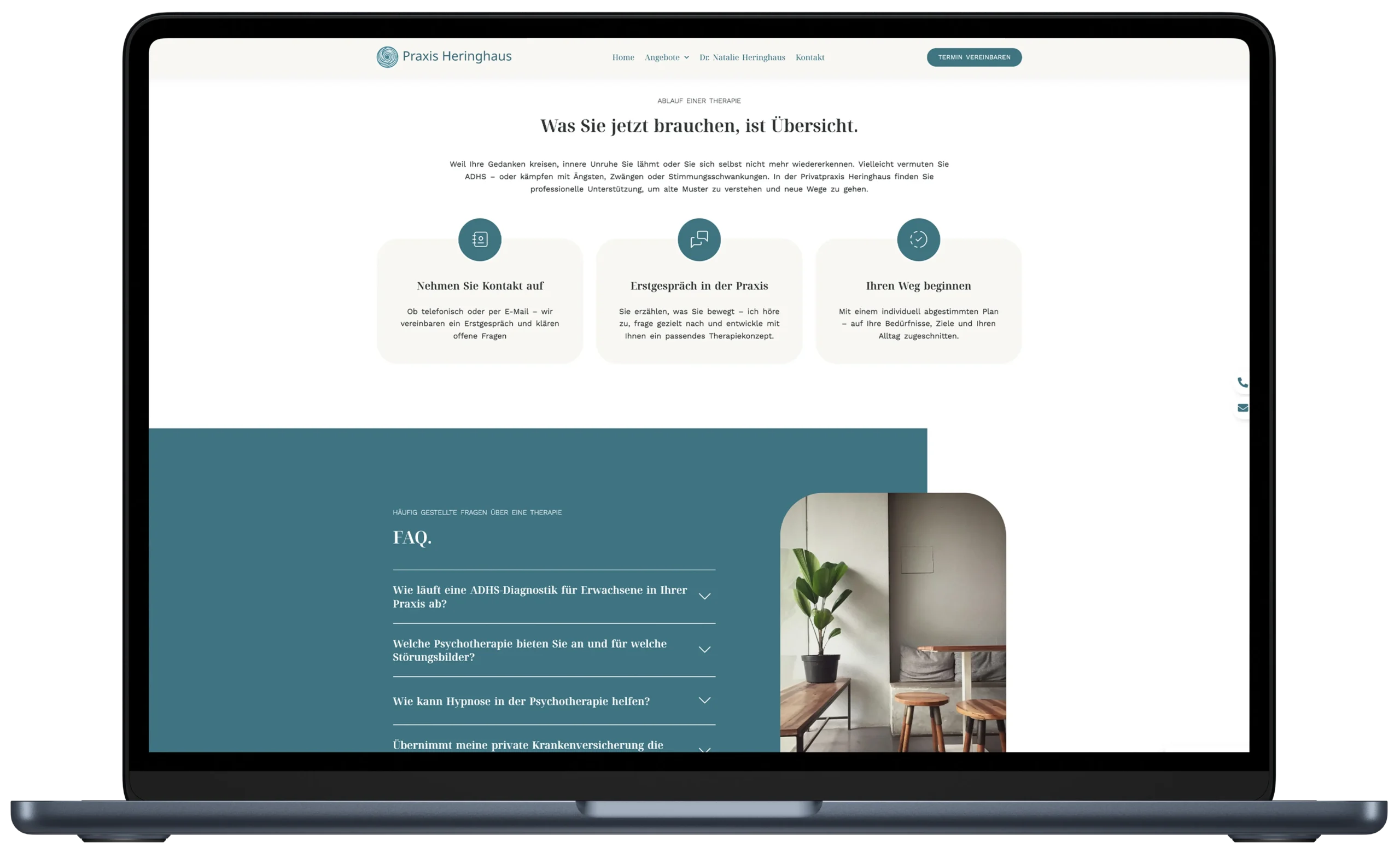Eine professionelle Website ist heute mehr als eine digitale Visitenkarte Ihrer Praxis. Patienten erwarten nicht nur klare Informationen, sondern auch einfache Online-Terminbuchung und weitere digitale Angebote wie bspw. Dokumente zum Vorab-Download. Wir unterstützen Sie dabei, Ihre Praxis modern und seriös im Internet zu präsentieren – individuell, DSGVO-konform und perfekt auf Ihre Bedürfnisse abgestimmt.
